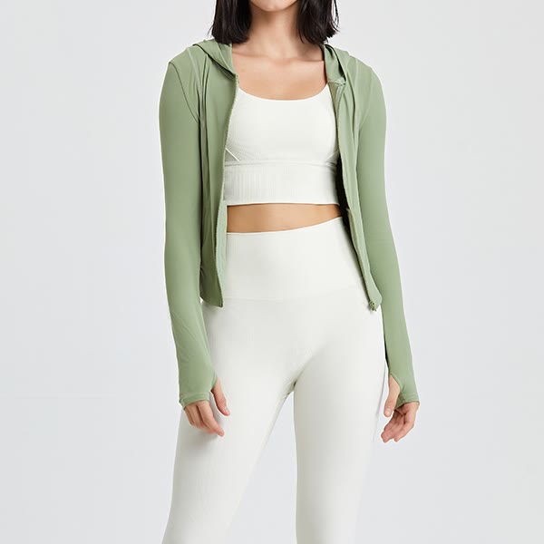 Olivenorma Maglie da allenamento a maniche lunghe, top da yoga con cerniera, felpe con cappuccio e giacca - image 1