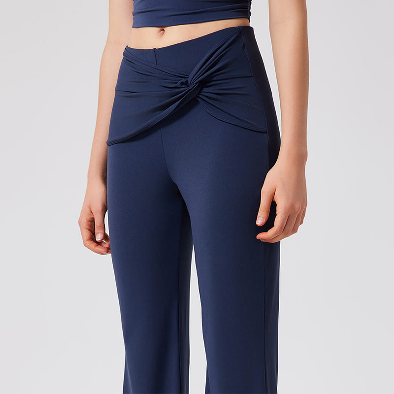 Esalta il tuo stile sportivo e casual con i nostri eleganti pantaloni da yoga svasati! Caratterizzati da un design a vita alta e da un esclusivo nodo decorativo, questi pantaloni aggiungono un tocco di eleganza esaltando le tue curve. La leggera svasatura dal ginocchio in giù crea una silhouette dinamica e slanciata che si muove con disinvoltura insieme a te.