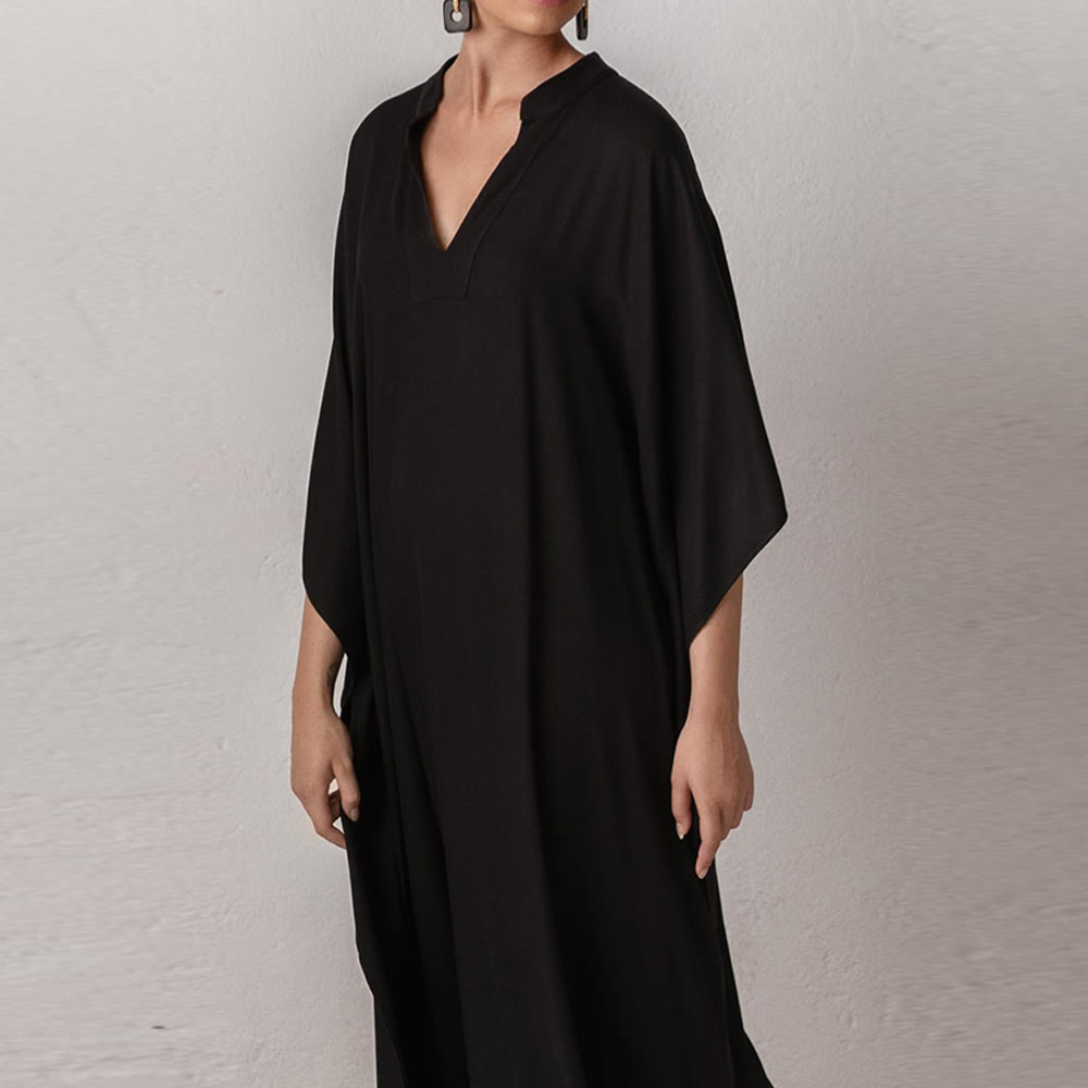 Abito da spiaggia Olivenorma in caftano da resort in poliestere setoso - Nero - Taglia unica - image 6