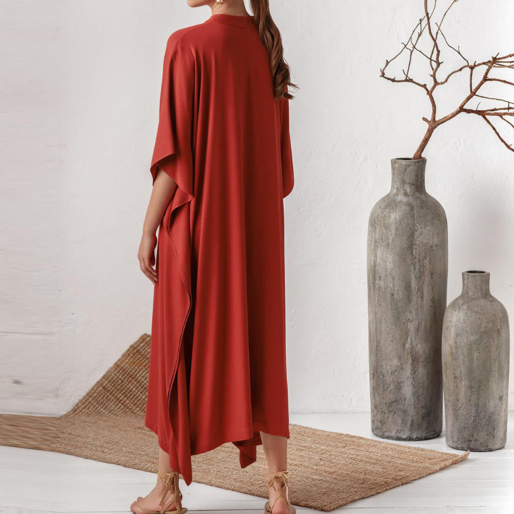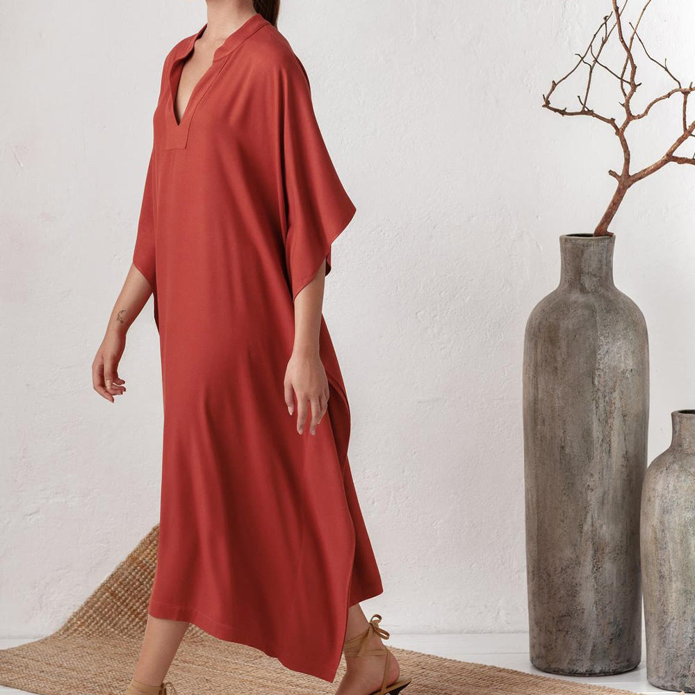 Abito da spiaggia Olivenorma in caftano da resort in poliestere setoso - Rosso - Taglia unica - image 0