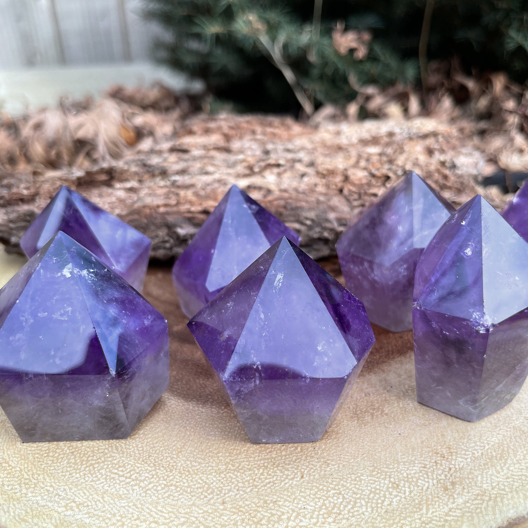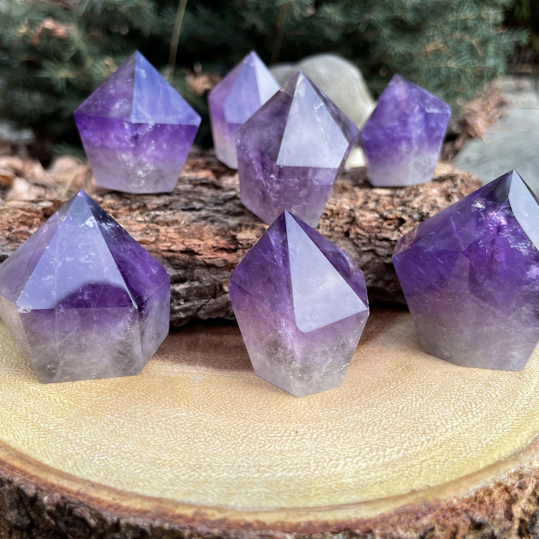 Trasforma l'atmosfera della tua casa con la decorazione in pietra preziosa Amethyst Tower Point Large Chunky Obelisk di Olivenorma. Purifica, radica e si connette con la natura riducendo lo stress ambientale.