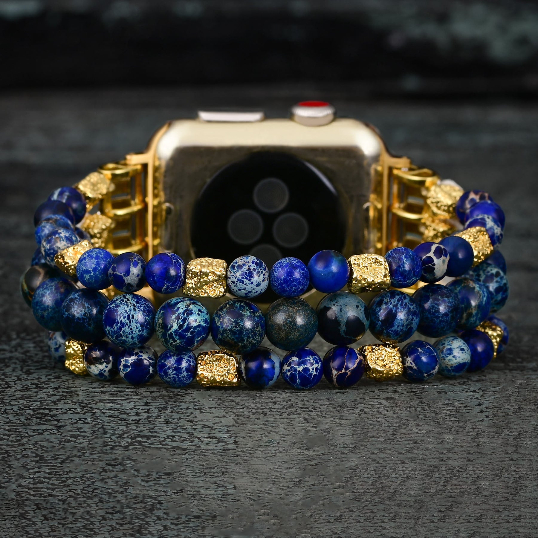 - Nome: Cinturino elastico per Apple Watch Olivenorma Blue Emperor Stone con perline
