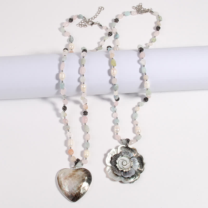 Collana con ciondolo a forma di fiore a forma di cuore in pietra naturale Olivenorma