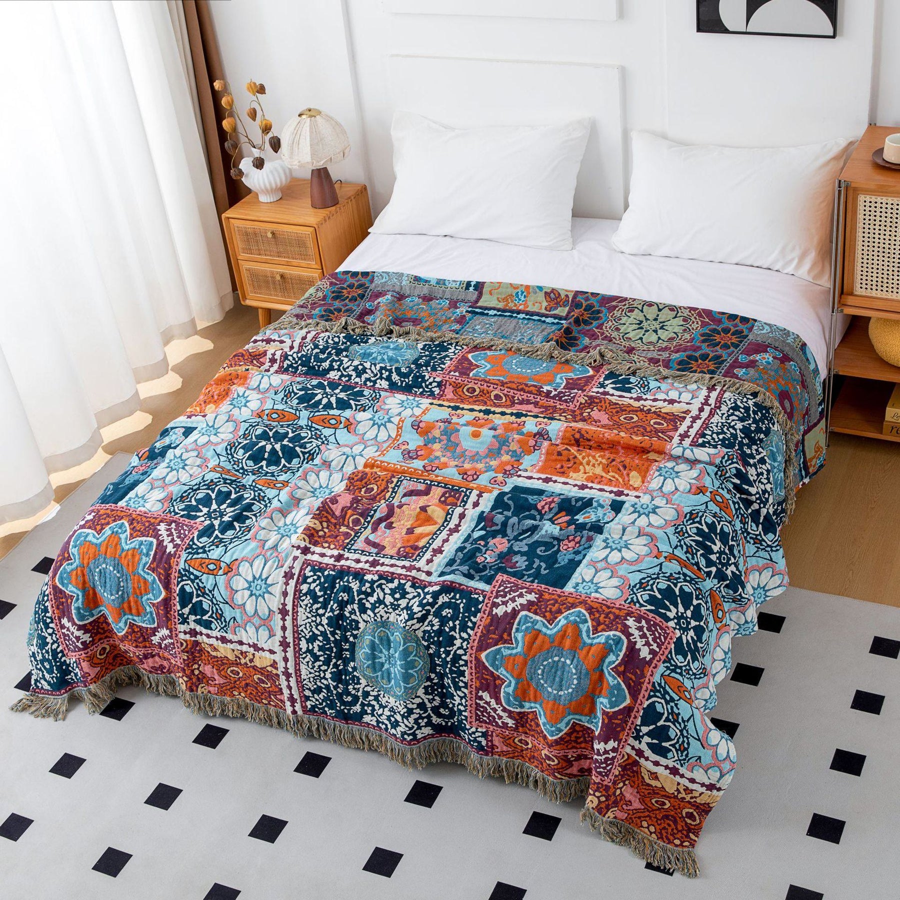 • Nome: Coperta in cotone patchwork etnico bohémien Olivenorma Blue Serenity