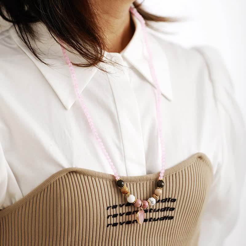 Il bracciale multistrato in quarzo rosa e rodonite presenta una splendida combinazione di perle di quarzo rosa e rodonite, entrambe note per le loro potenti proprietà curative. Il ciondolo a forma di cuore al centro rappresenta amore, compassione ed equilibrio emotivo. Questo bracciale multistrato promuove l'amore proprio e l'armonia, rendendolo un pezzo perfetto per chi cerca guarigione, emotiva e supporto nei momenti difficili.