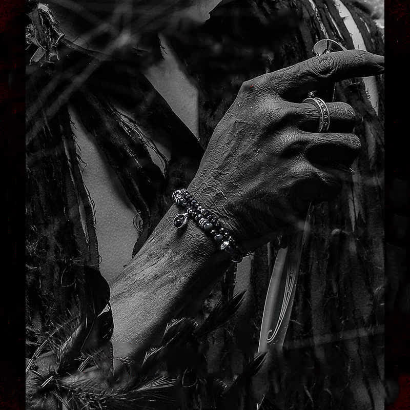• Nome: Bracciale con ciondolo a forma di artiglio del diavolo in perline di ossidiana d'argento Olivenorma