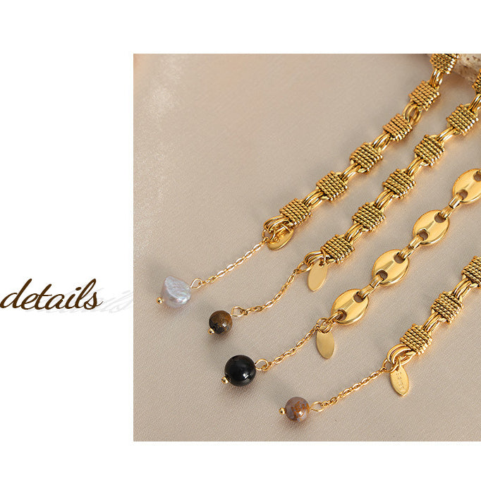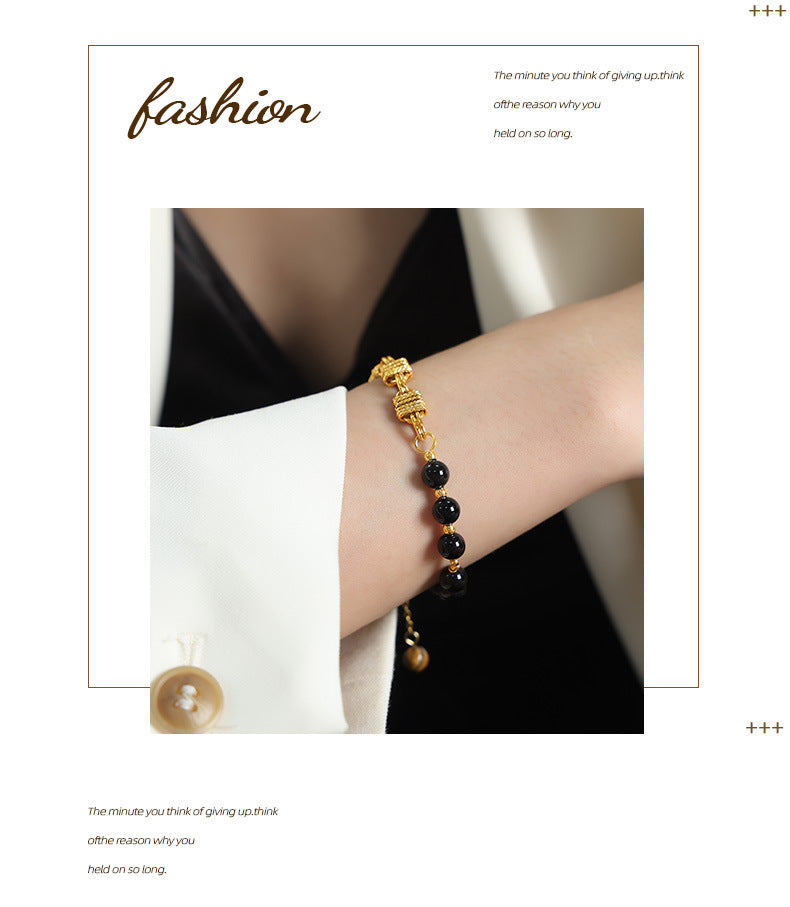 - Nome: Bracciale in acciaio al titanio con perline di agata nera e onice Olivenorma