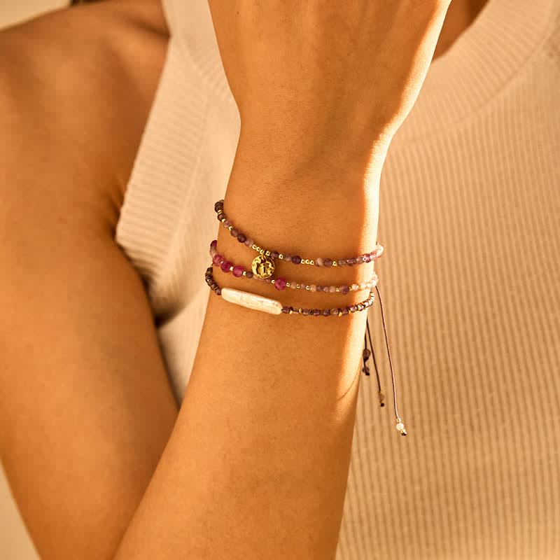 • Nome: Bracciale con coulisse in perle fini di ametista naturale Olivenorma