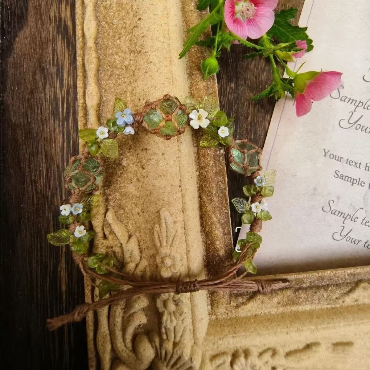 - Nome: Braccialetto intrecciato con fiori in pietra di fluorite verde e peridoto Olivenorma