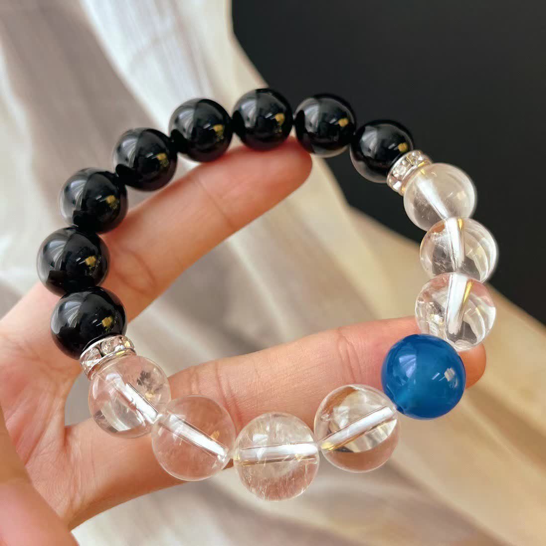 Il bracciale Obsidian Clear Crystal presenta uno Zaffiro centrale affiancato da Cristalli trasparenti, con perle di Ossidiana che completano il pezzo. Lo Zaffiro simboleggia saggezza e tranquillità, mentre il Cristallo trasparente amplifica la chiarezza e l'Ossidiana fornisce radicamento e protezione. Insieme, questi elementi promuovono un'energia equilibrata e protettiva che migliora la calma interiore e la concentrazione. Favorisce la stabilità sia spirituale che emotiva, aiutando a purificare la negatività e supportando al contempo le tue intenzioni.