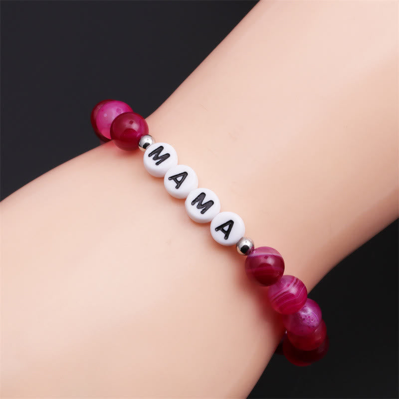 Il bracciale Rose Red Agate è realizzato con cura con vivaci perle di agata rosa rossa note per le loro proprietà protettive e curative. Questo bracciale di perline recita "MOM", onorando lo speciale legame tra madre e figlio. È progettato per fornire supporto emotivo e simboleggiare l'amore, rendendolo un accessorio significativo per ogni madre.