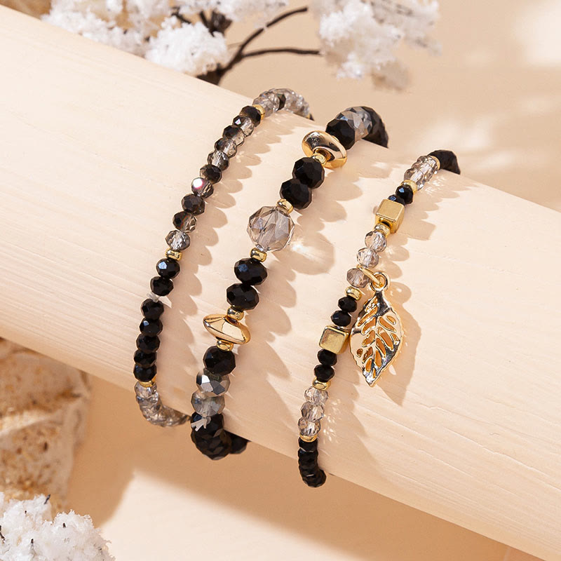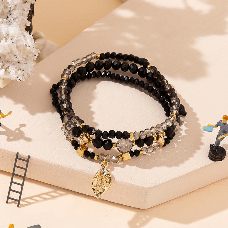 - Nome: Olivenorma Pendente in foglia d'oro con perline di cristallo Bracciale a tre strati