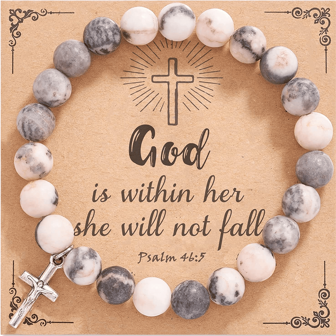 Bracciale con ciondolo a croce con perline di rodonite di diaspro zebra rosa Olivenorma da 8 mm