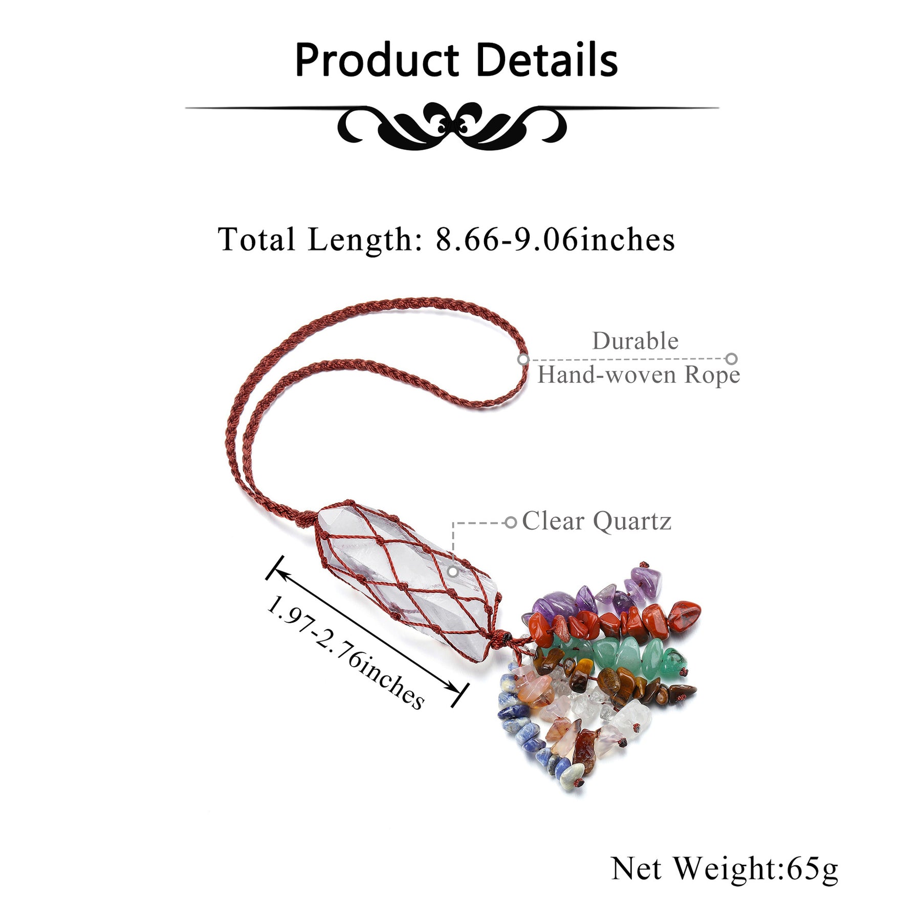 Immergiti nelle energie curative del nostro ornamento pendente 7 Chakra Healing Crystals. Questo squisito pezzo presenta una selezione di cristalli scelti per il loro allineamento con i sette chakra del corpo, dal diaspro rosso radicante del chakra della radice all'illuminante quarzo ialino del chakra della corona. Progettato per promuovere equilibrio e guarigione, questo ornamento aiuta a sbloccare e armonizzare i chakra, migliorando il proprio viaggio spirituale e portando un senso di pace e chiarezza in qualsiasi spazio.
