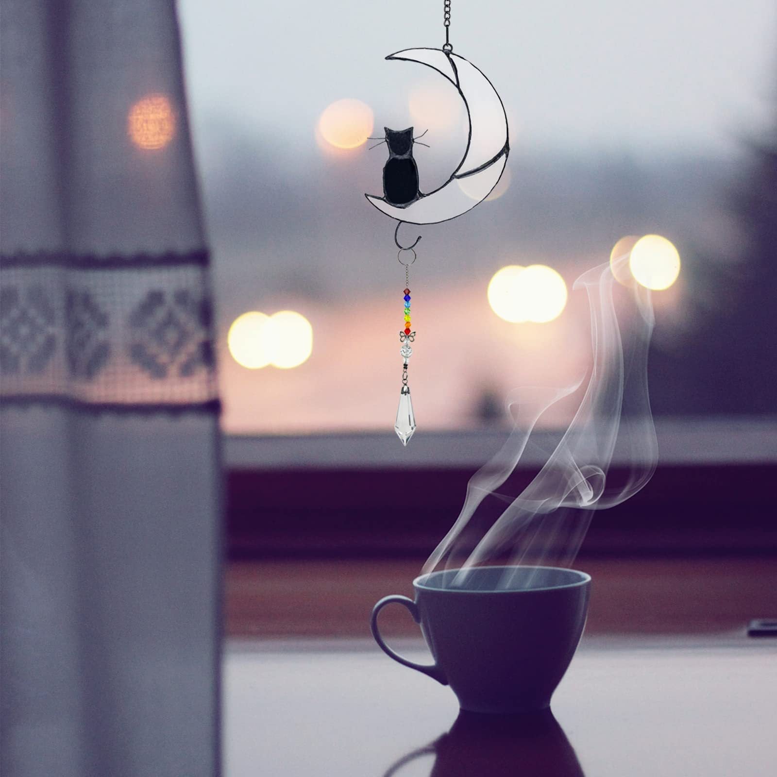 - Nome: Ornamento per finestra in vetro con gatto nero e luna bianca Olivenorma