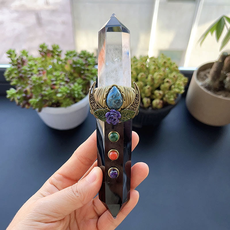 Decorazione con pietra preziosa e bacchetta magica in cristallo naturale Olivenorma - Quarzo ialino e ossidiana - Stile n. 01 - image 1