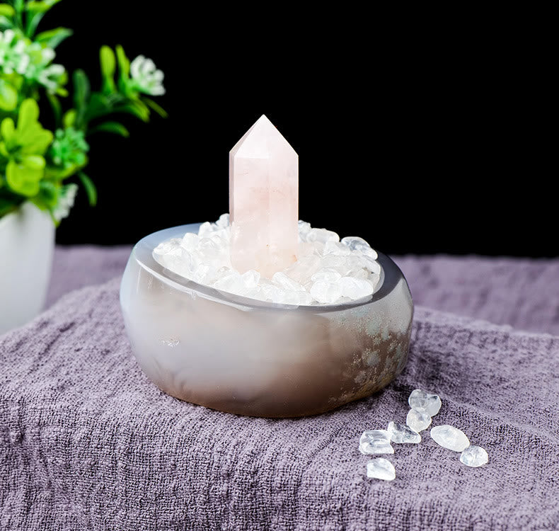 L'ornamento Agate Bowl Cornucopia è una decorazione in pietra preziosa che irradia bellezza naturale e armonia energetica. Realizzata in agata brasiliana, nota per le sue proprietà di messa a terra, questa ciotola non solo arricchisce il tuo arredamento, ma aiuta anche a purificare e stabilizzare l'energia del tuo ambiente, rendendola un pezzo ideale per migliorare la pace e l'abbondanza in qualsiasi spazio.