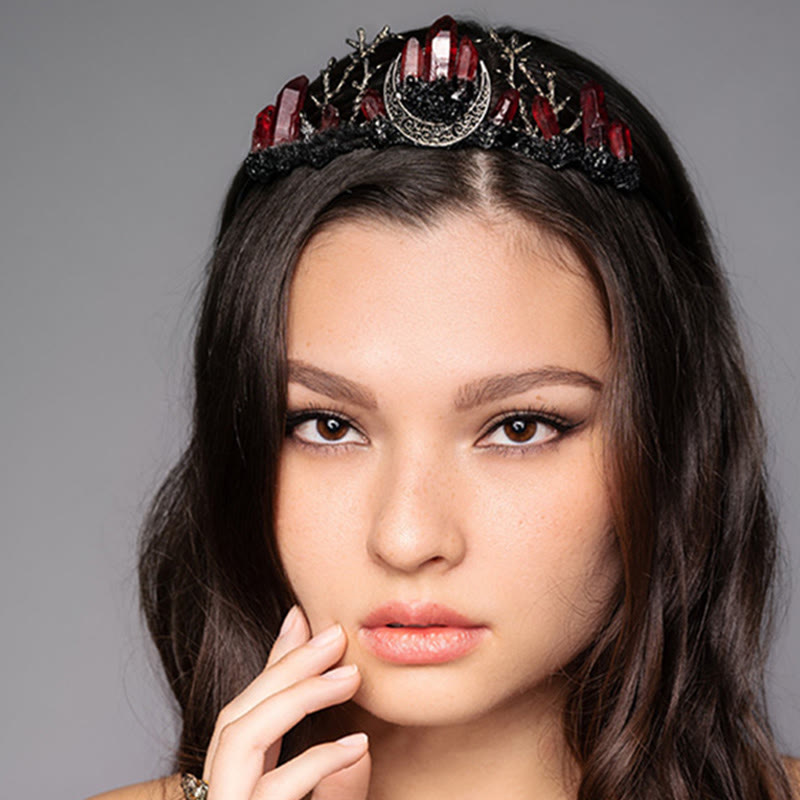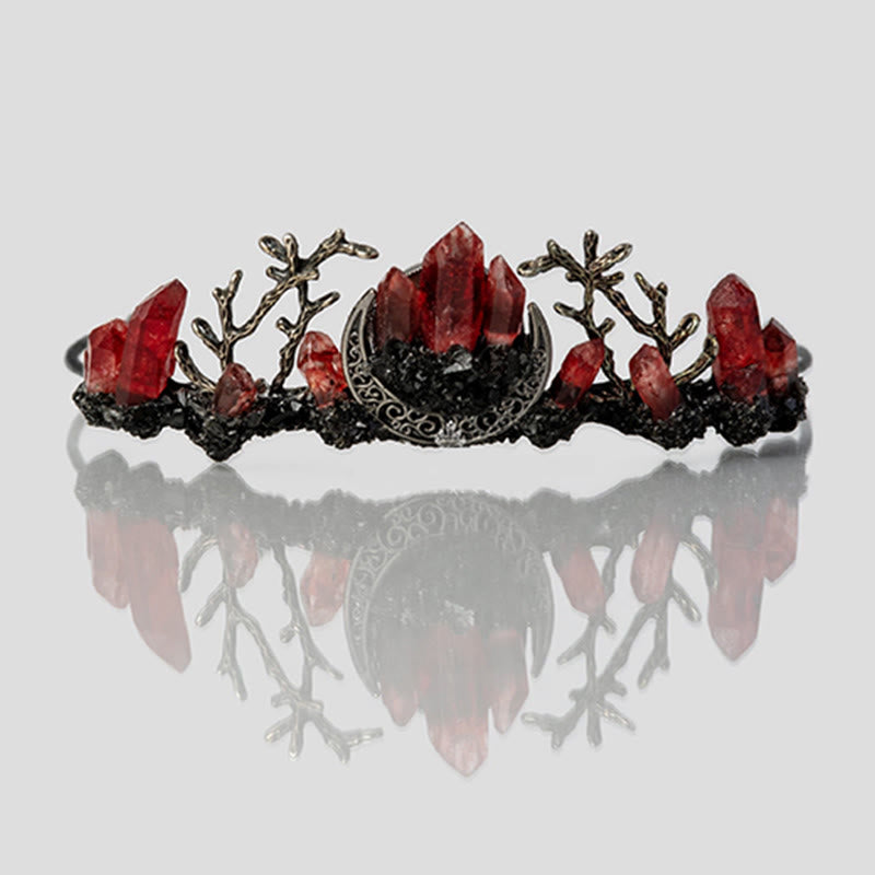 - Nome: Corona di cristallo con ramo di luna stregata in quarzo rosso Olivenorma e tormalina nera
