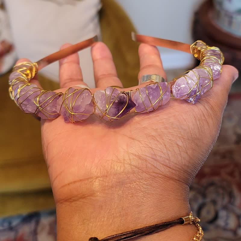 Olivenorma Parrucca artigianale in cristallo di ametista e corvo