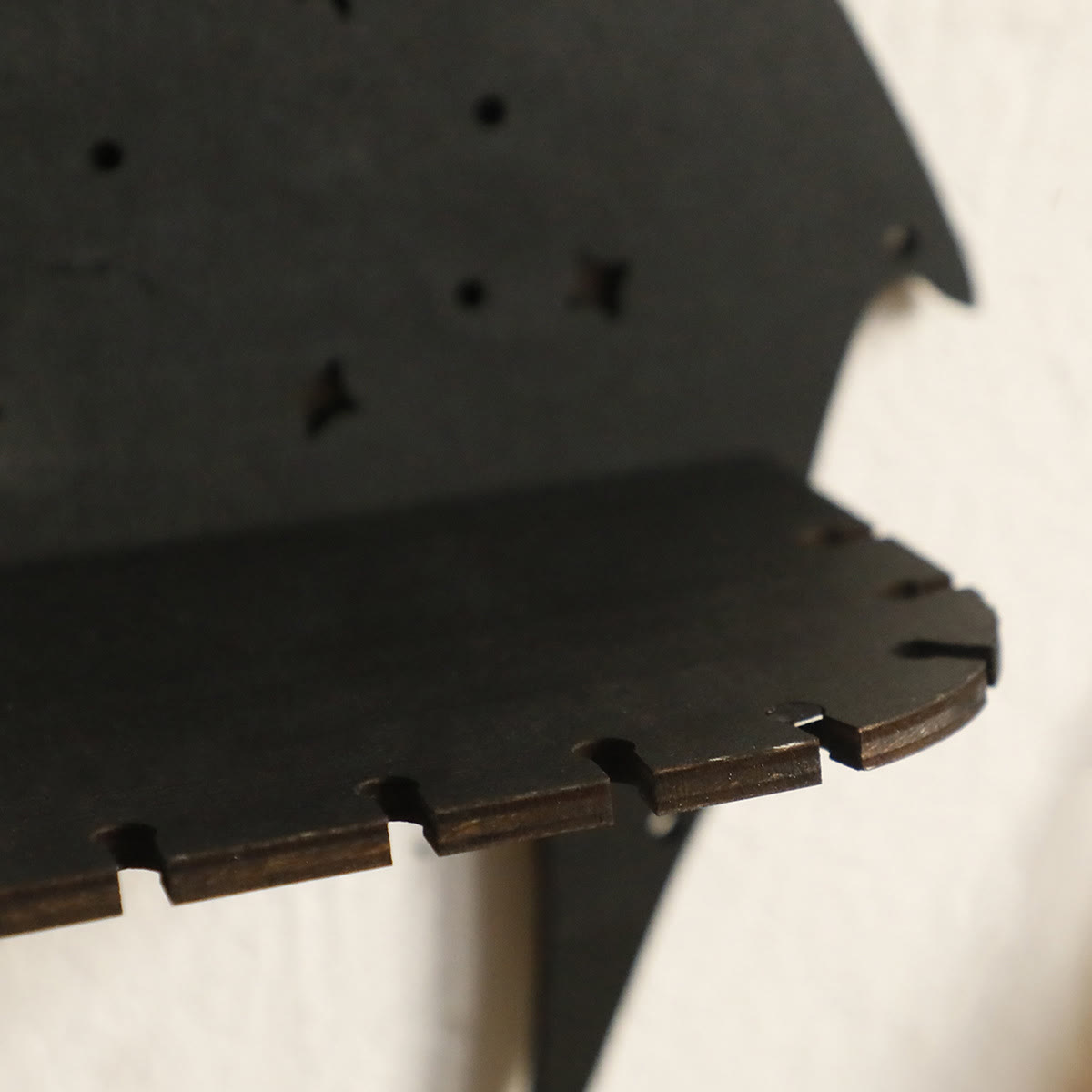 Verniciato color legno nero e rifinito con vernice ecologica.