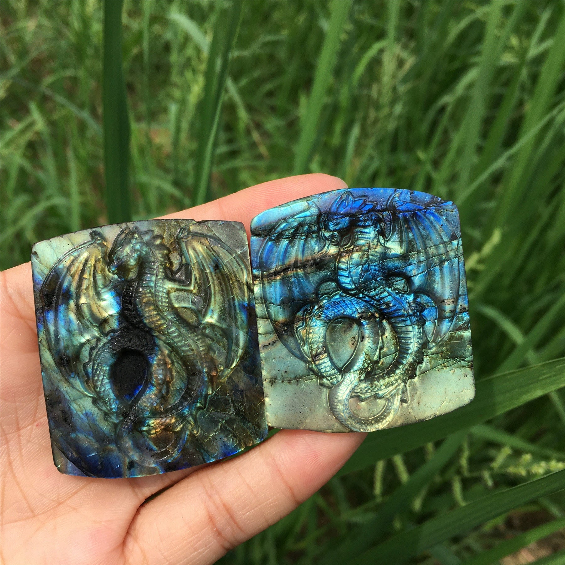 Olivenorma presenta la decorazione in Labradorite naturale, un capolavoro di autentica lavorazione artigianale delle pietre preziose. Abbraccia l'energia mistica della Labradorite, nota per i suoi benefici spirituali e l'incantevole gioco di colori. Esalta l'arredamento della tua casa con questa squisita scultura di drago che canalizza il potere della trasformazione e della protezione. Invita energie positive nel tuo spazio abitativo e armonizza i tuoi dintorni con la magia della Labradorite.