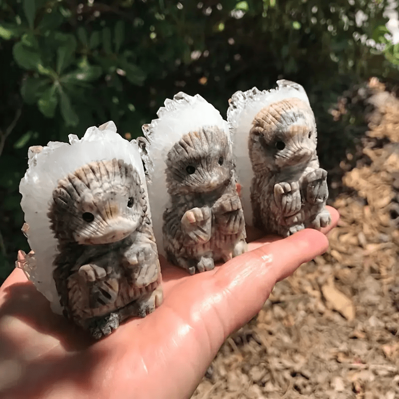 La decorazione in pietra preziosa White Crystal Hedgehog presenta un riccio splendidamente inciso realizzato in autentico Clear Crystal. Questo design unico simboleggia protezione, resilienza e chiarezza, rendendolo un'aggiunta significativa a qualsiasi spazio di meditazione o consapevolezza. Il Clear Crystal promuove l'armonia spirituale e l'equilibrio emotivo mentre il riccio aggiunge uno strato di protezione simbolica. Perfetto per pratiche di radicamento o come regalo prezioso.