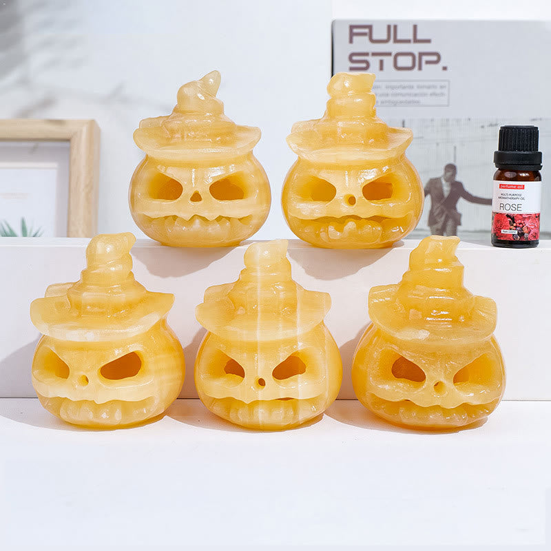 Lampada decorativa con pietra preziosa intagliata a forma di teschio di zucca in avventurina gialla Olivenorma