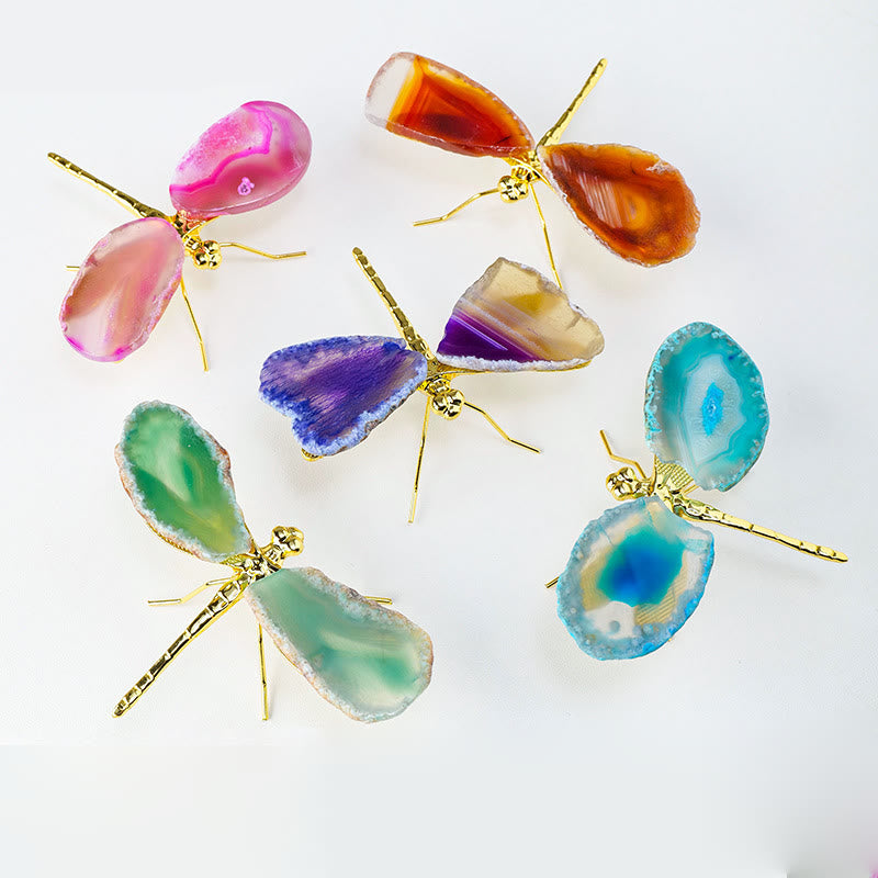 Olivenorma fette di agata naturale decorazione con pietra preziosa libellula