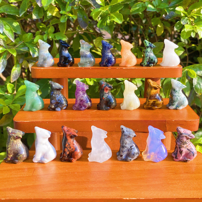 Decorazione in pietra preziosa con intaglio a forma di lupo in cristallo Olivenorma da 2"
