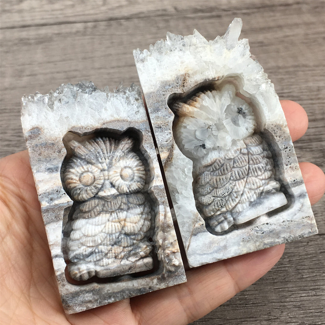 Decorazione in pietra preziosa con gufo carino in cristallo naturale Olivenorma