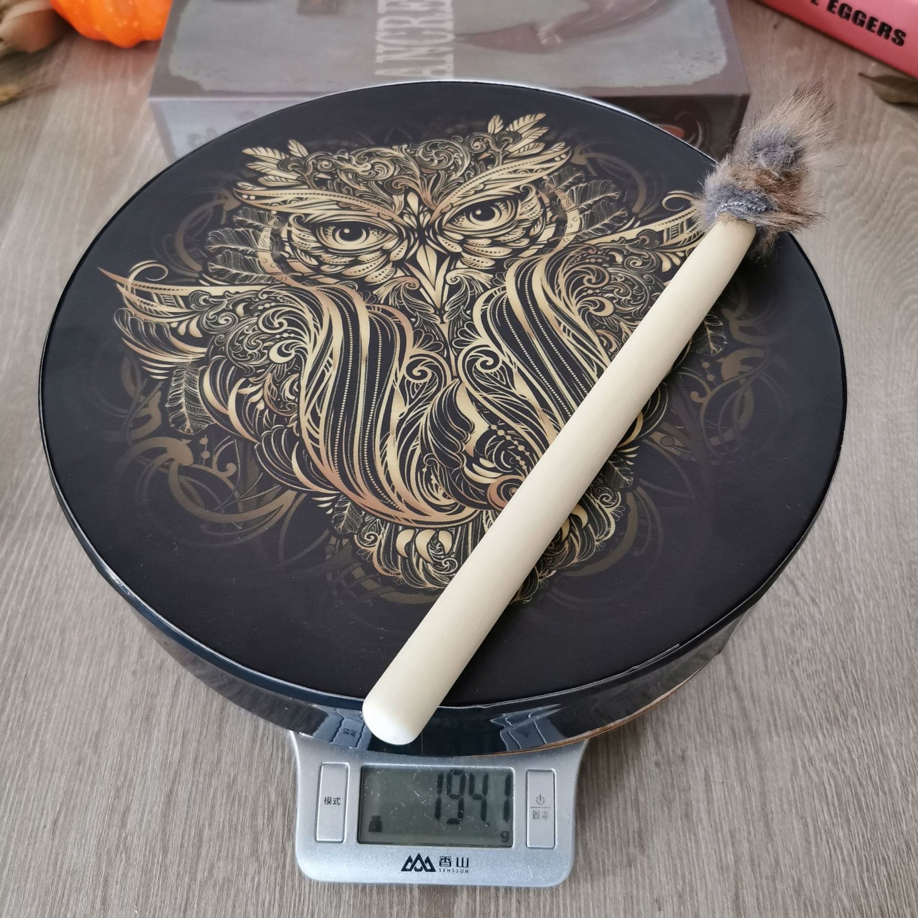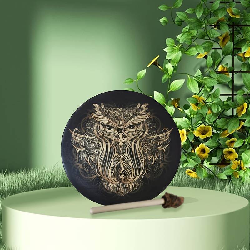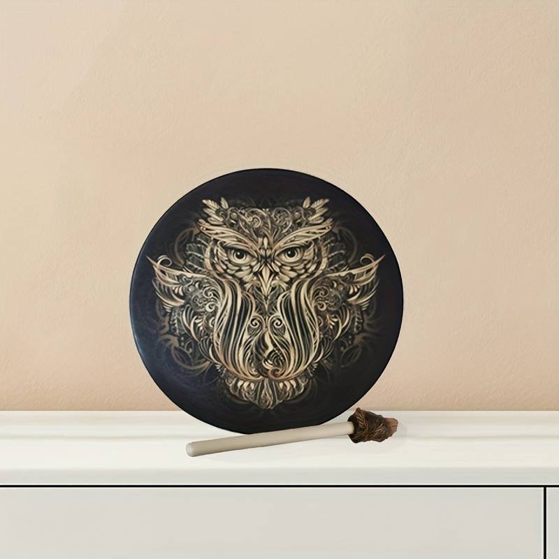 - Nome: Olivenorma tamburo sciamanico siberiano con stampa di gufo fatto a mano