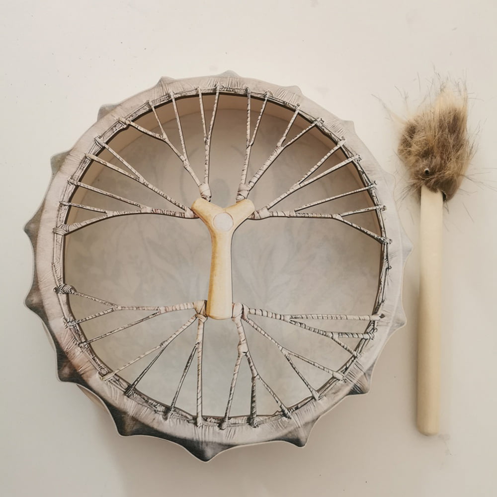 Questo tamburo Shaman Goddess, decorato con un motivo di dea in un sereno blu e bianco, incarna l'essenza dell'Albero della Vita. Simboleggia l'interconnessione, la crescita personale e la forza, rendendolo un'aggiunta perfetta per coloro che cercano profondità spirituale nell'arredamento della propria casa. Ideale per spazi di meditazione o come punto focale in qualsiasi stanza.