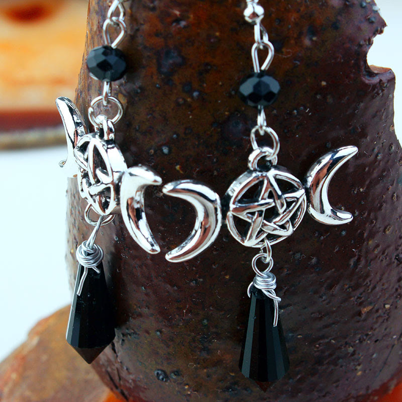 Orecchini pendenti in ossidiana con tripla luna della dea della strega Olivenorma