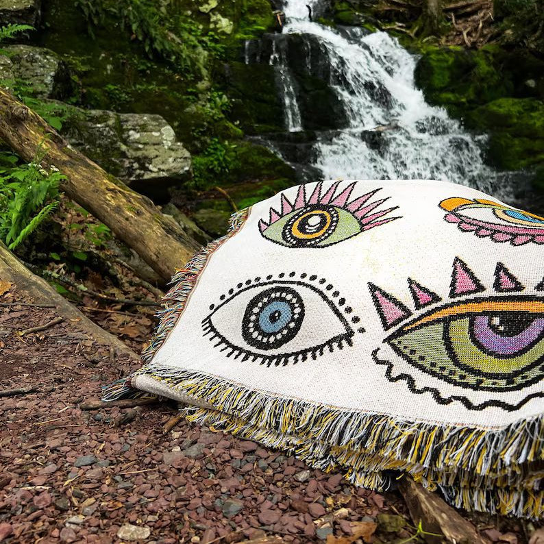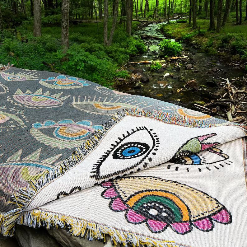 • Nome: Olivenorma Blue White Evil Eye Indian Style Tassels Woven Blanket