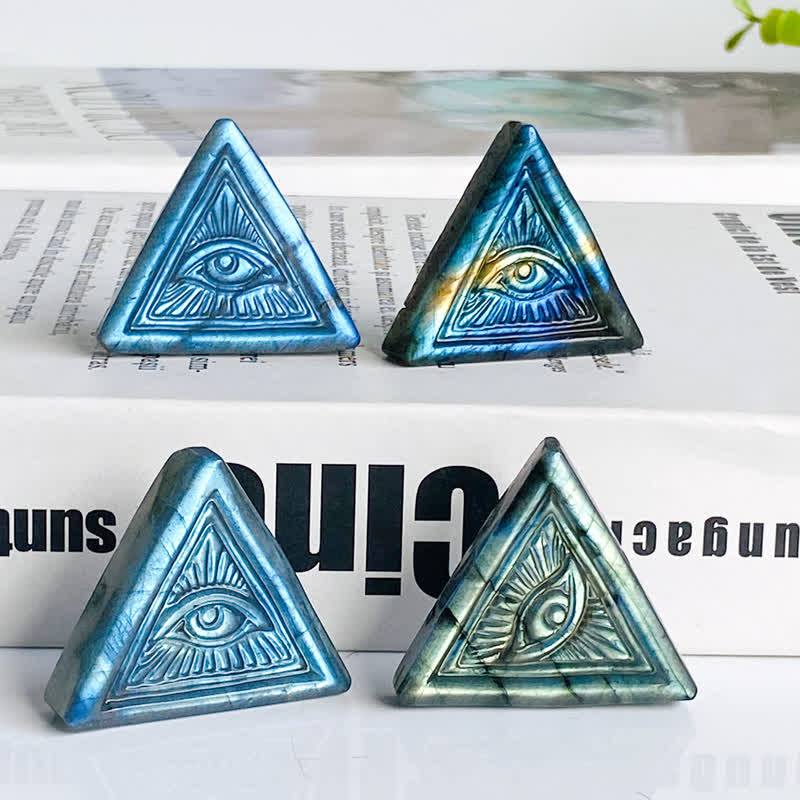 Decorazione triangolare intagliata in labradorite naturale Olivenorma con occhio malvagio