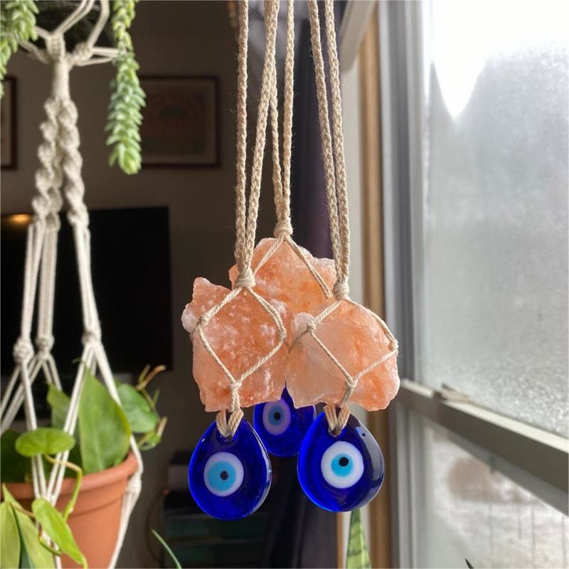 Ornamento per auto con occhio malvagio in pietra originale al quarzo rosa Olivenorma