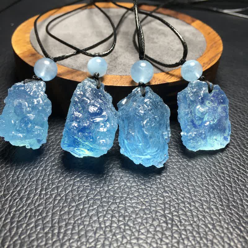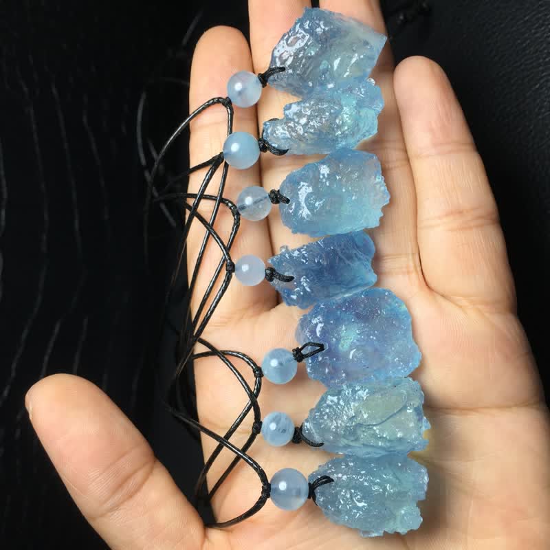 Collana con pietra preziosa calma in acquamarina naturale Olivenorma