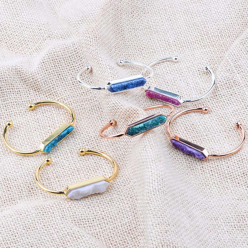 Olivenorma Bracciale rigido in rame e metallo con cristalli naturali