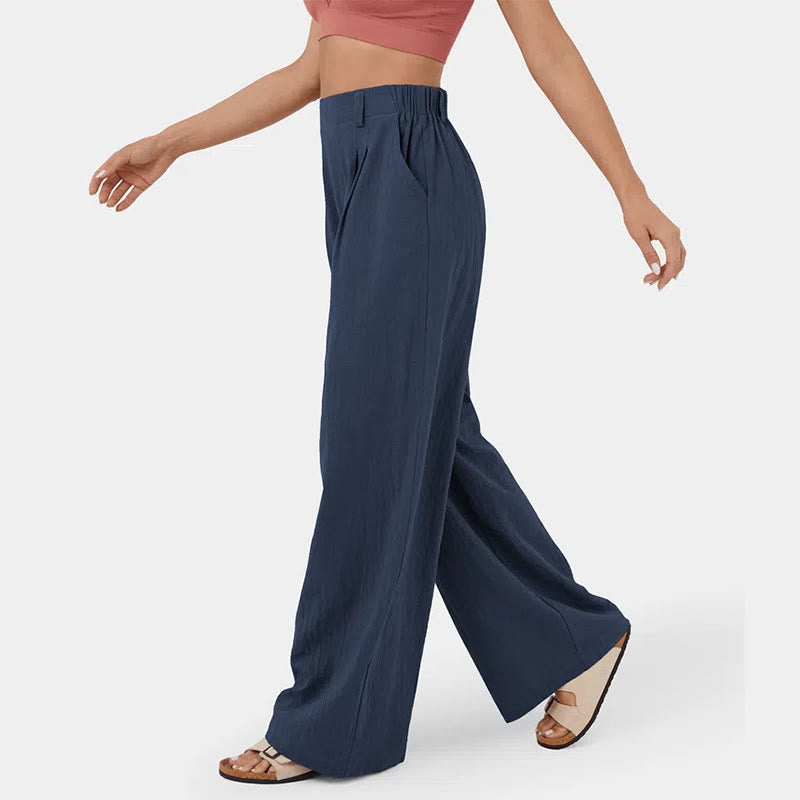 Affronta la giornata con stile e disinvoltura con i nostri pantaloni larghi e a vita alta Olivenorma da donna ✨. Realizzati in tessuto leggero e morbido al tatto, questi pantaloni presentano un drappeggio naturale che crea una silhouette allungata e lusinghiera. La vita alta elastica garantisce una vestibilità comoda e flessibile che si adatta a ogni tuo movimento. 🌿👖