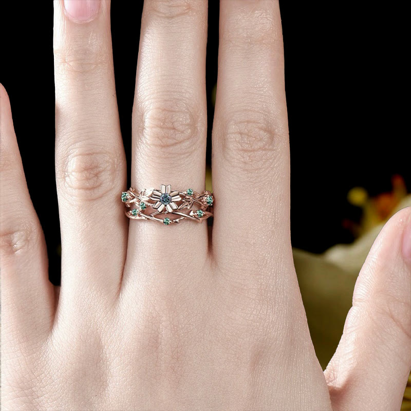 "Sylvan Whisper" cattura il delicato mormorio delle foglie e la magia dei fiori selvatici nascosti. L'alessandrite centrale fiorisce come una flora mistica nutrita da pietre verde rugiada, mentre fasce elegantemente intrecciate imitano viticci erranti.