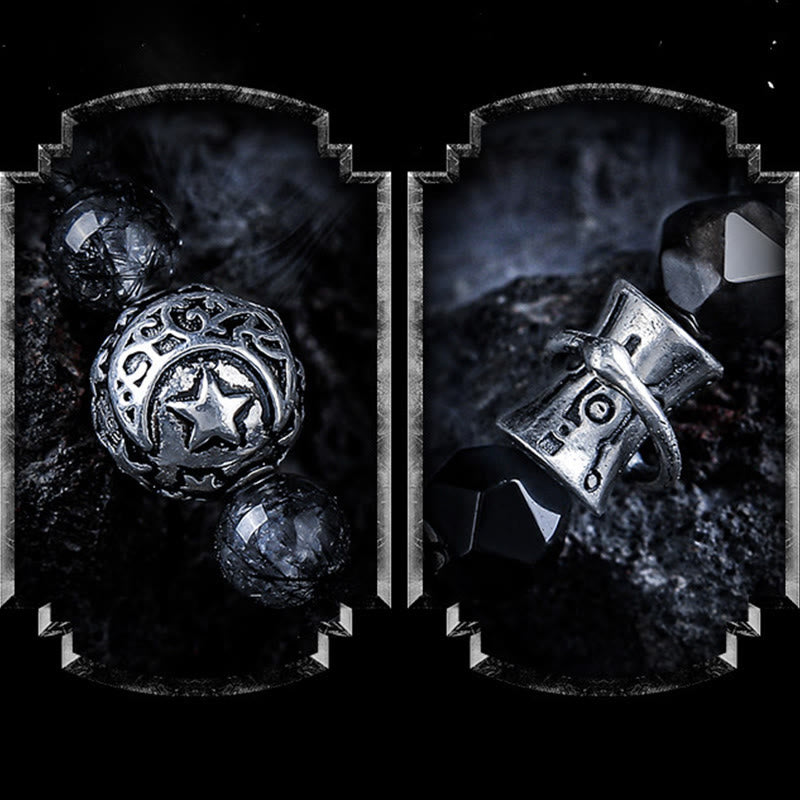 - Materiale: Quarzo nero rutilato, ossidiana argentata