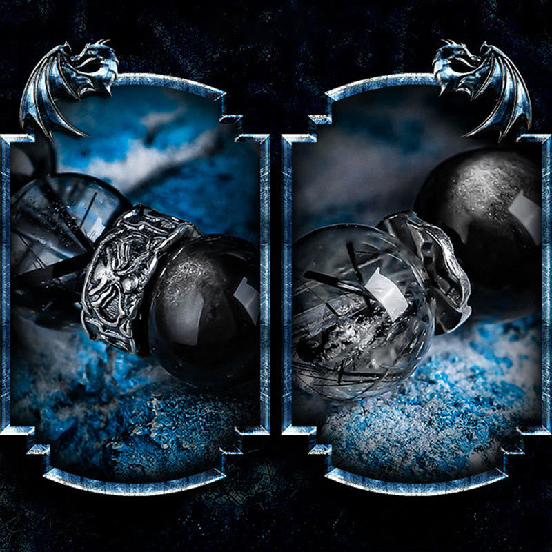 • Materiale: Quarzo nero rutilato, ossidiana argentata