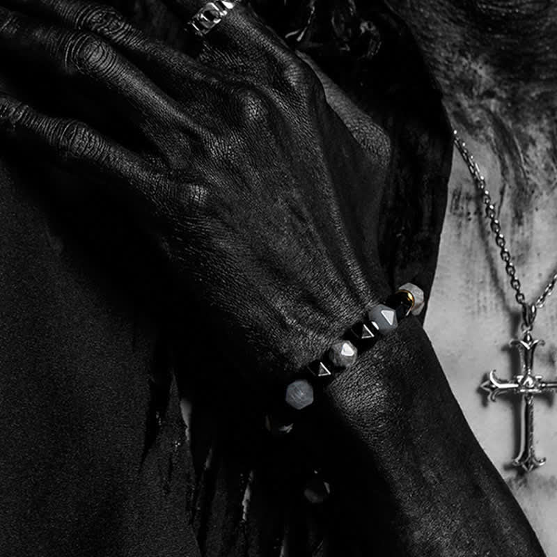 - Materiale: ossidiana, labradorite, diaspro grigio, pietra lavica