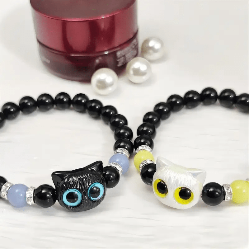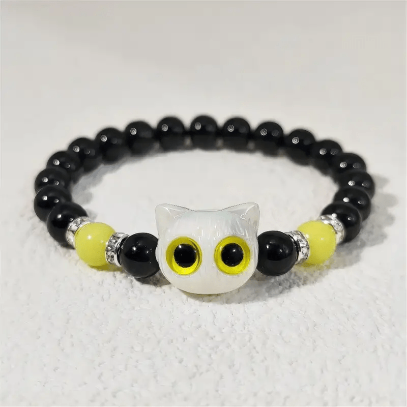 Olivenorma 1 pz Braccialetto di perline con ciondolo a forma di gatto carino luminoso
