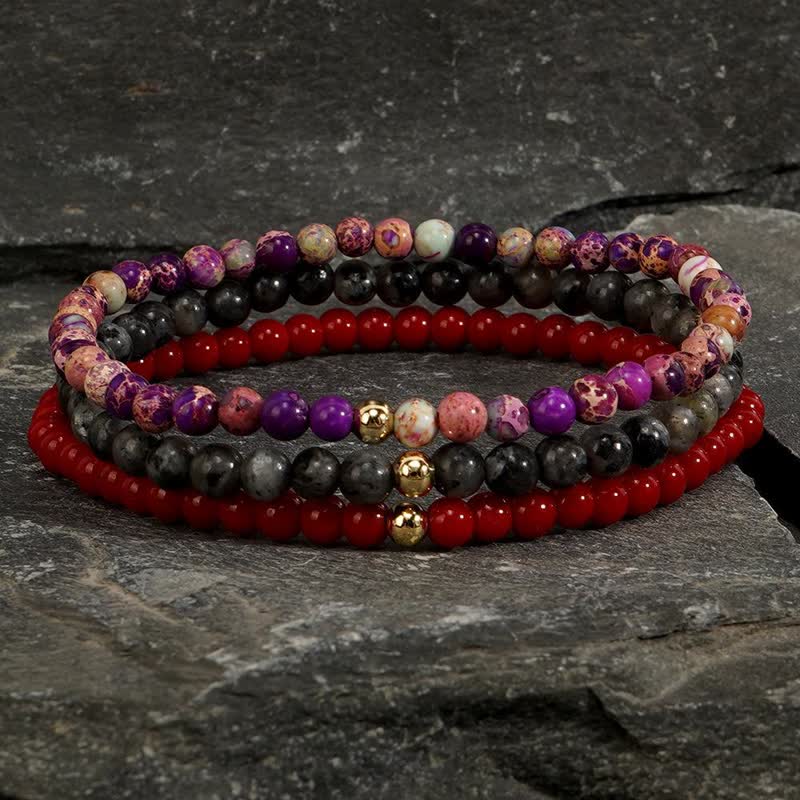 Set di 3 bracciali in quarzo rubino e labradorite Olivenorma
