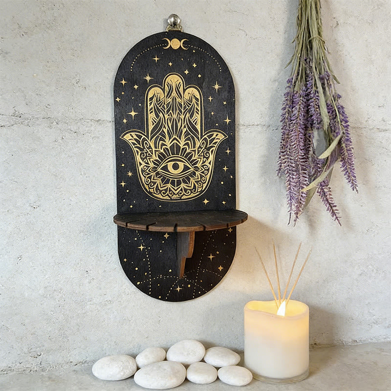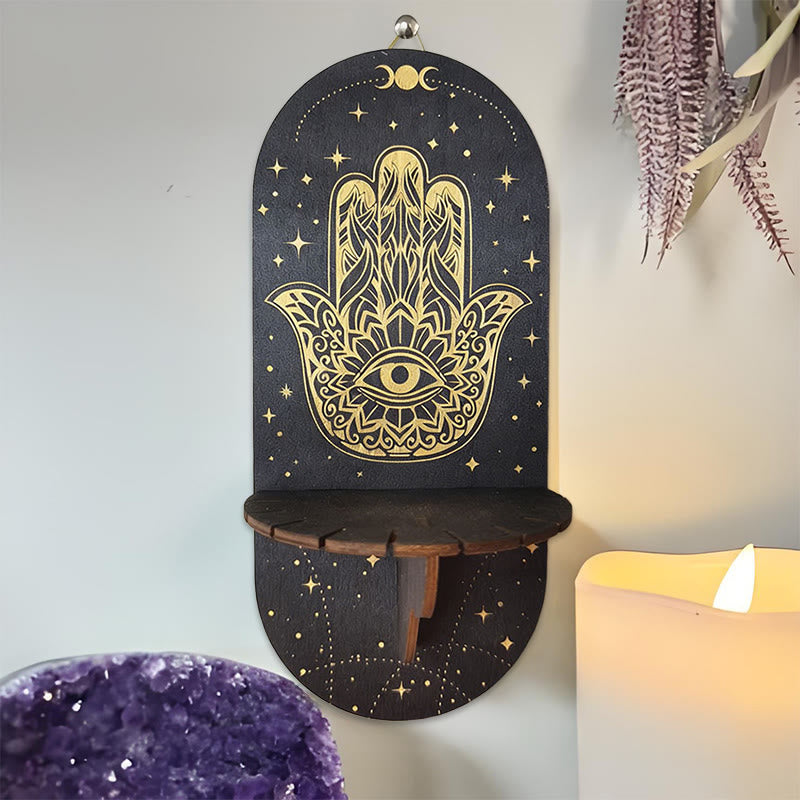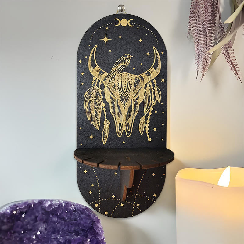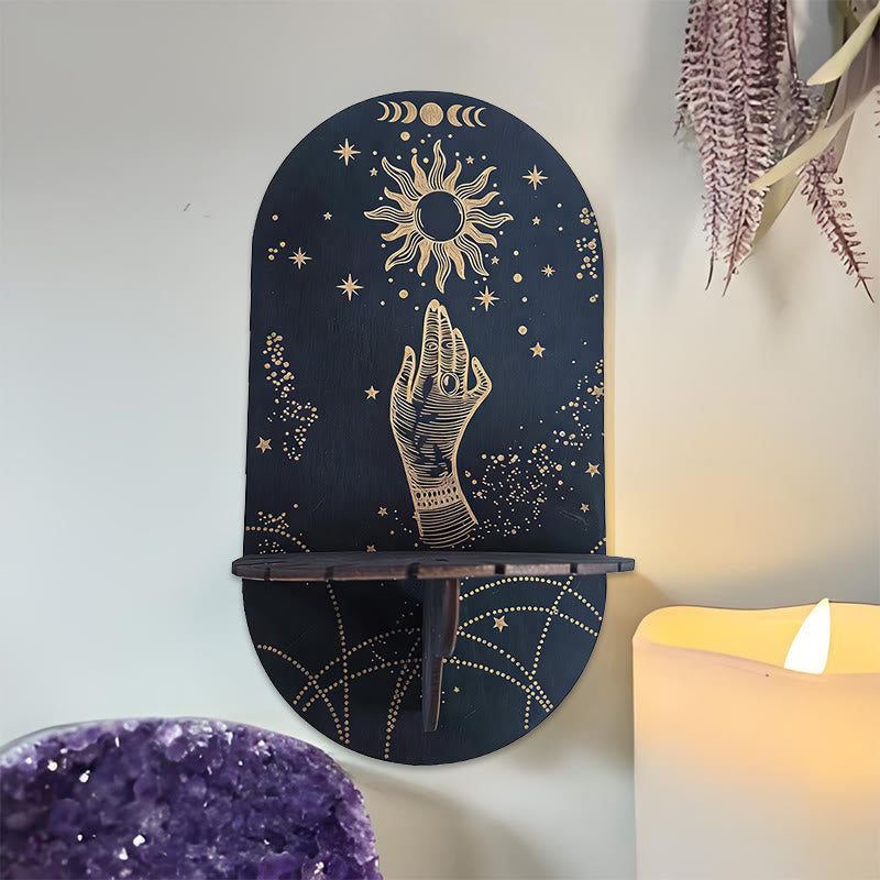 Olivenorma Mensola in cristallo ovale Boho nera in legno