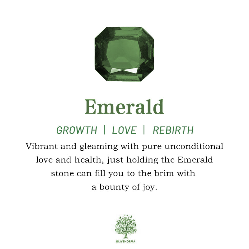 Lo Smeraldo è un po' un enigma, ma è qui per guarire il cuore, ti aiuta a sgorgare in una favolosa energia rinfrescata e può portare ogni genere di bontà nella tua vita. Un tema duraturo che irradia dalle sue frondose tonalità primaverili è la promessa di eternità e amore. È una pietra di rigenerazione, rinnovamento e recupero, ma è anche costellata dai temi più maturi di armonia, compassione, amore e illuminazione.