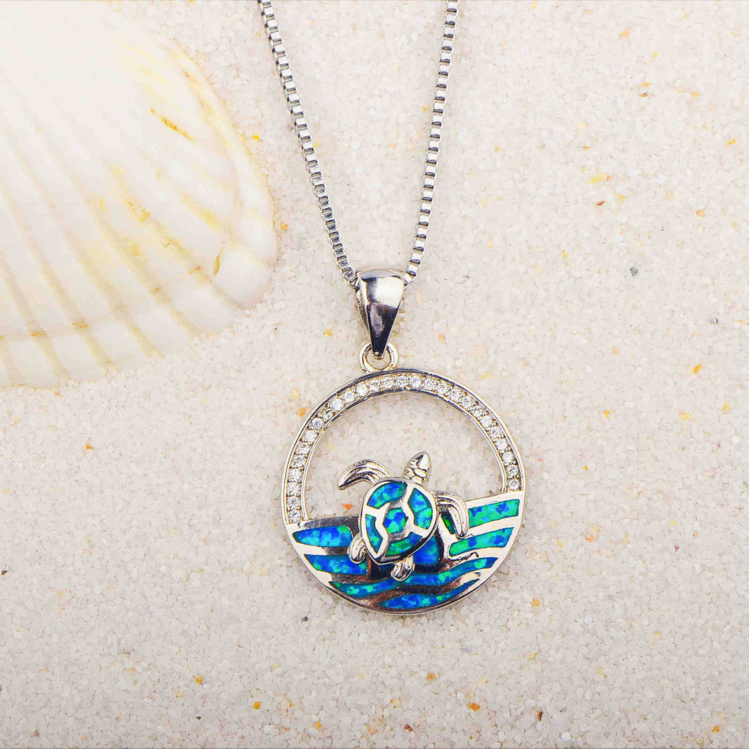 Collana con ciondolo tartaruga nuotatrice in opale blu hawaiano Olivenorma