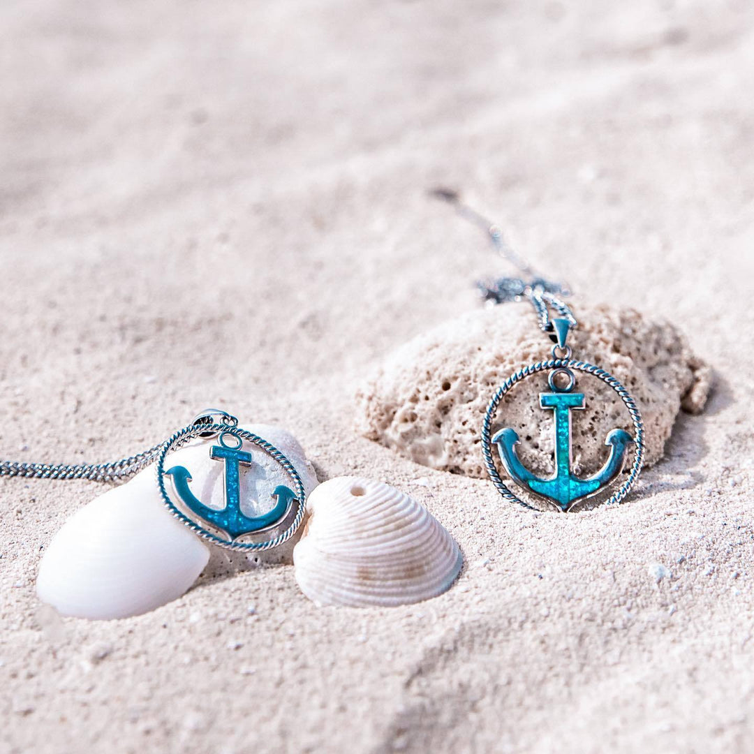 Collana con ciondolo ad ancora in blu opale Olivenorma