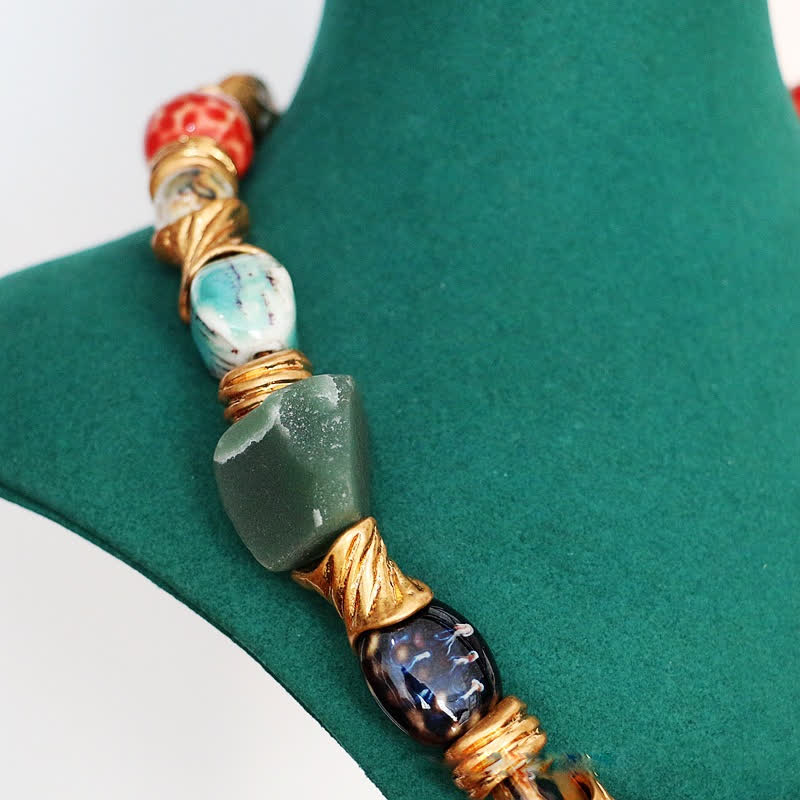 La collana Irregular Stone Ceramic Beaded è realizzata meticolosamente con pietre naturali e perle di ceramica, combinando bellezza organica e durevolezza. Questi materiali simboleggiano il radicamento spirituale e l'equilibrio emotivo, promuovendo la tranquillità nella vita quotidiana. Il design irregolare evidenzia l'individualità, ispirando consapevolezza e pace interiore. Una scelta ponderata per coltivare consapevolezza spirituale e intenzioni significative.
